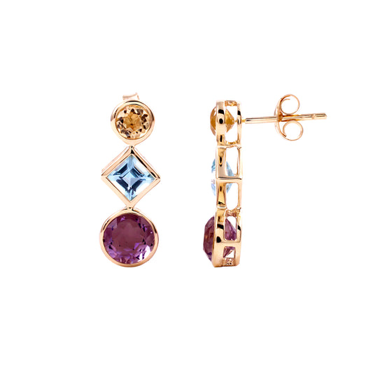 14k Citrine, Blue Topaz, and Amethyst Post Earring