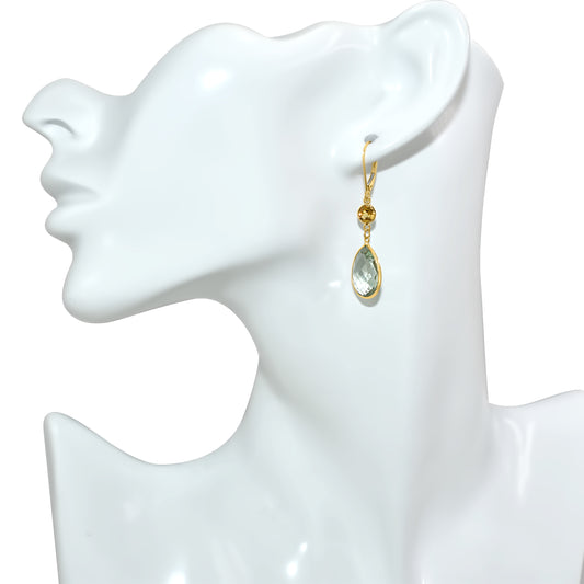 14k Yellow Gold Blue Topaz Chandelier Leverback Earring