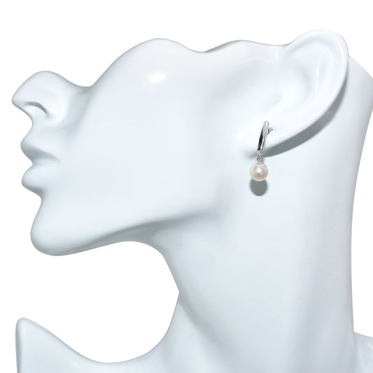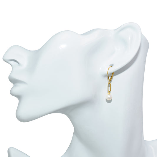 14k White Freshwater Pearl Paperclip Drop Leverback Earring
