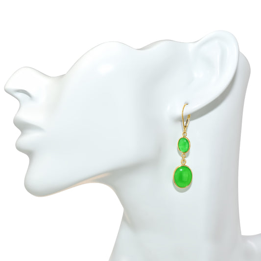 14k Chrome Diopside 3-Row Dangle Leverback Earring