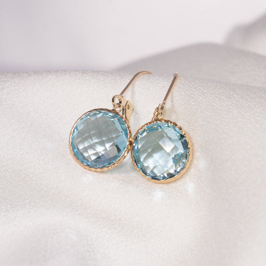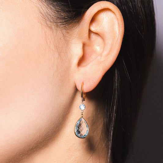 14k Blue Topaz Dual Bezel Huggie Hoop Dangle Earring