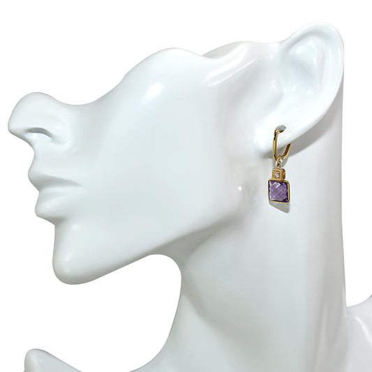 14k Amethyst Square Bezel Vs Diamond Huggie Hoop Earring