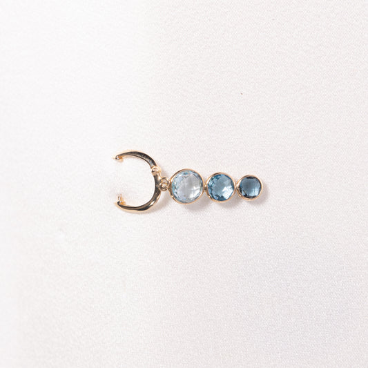 14k Multi Blue Topaz Triple Round Bezel Huggie Hoop Earring