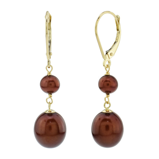 14k White Freshwater Pearls Leverback Dangling Cable Chain Leverback Earring
