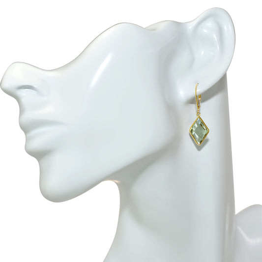 14k Green Amethyst Rhombus Bezel Leverback Earring
