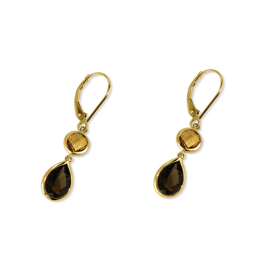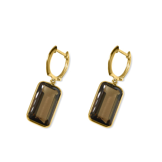 14k Smoky Quartz Emerald Cut Hoop Earring