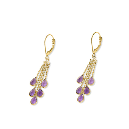 14k Amethyst 5 Line Pear Drop Leverback Earring