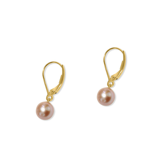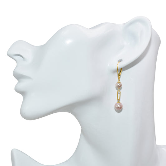 14k Natural Pink Pearl Paperclip Drop Leverback Earring