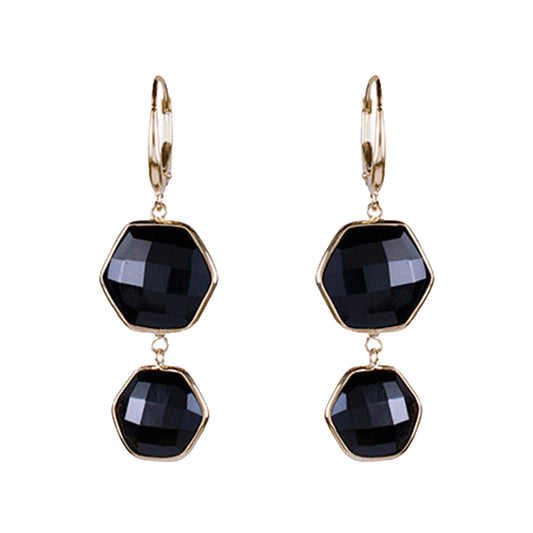 14k Black Onyx Double Hexagon Bezel Leverback Earring