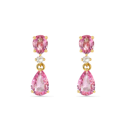 14k Pink Sapphire Diamond Oval & Pear Drop Earring