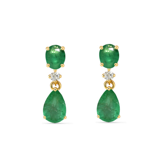 14k Emerald Diamond Oval & Pear Drop Earring