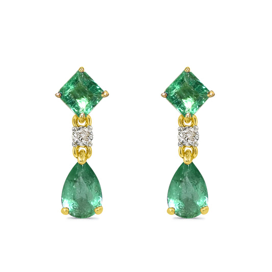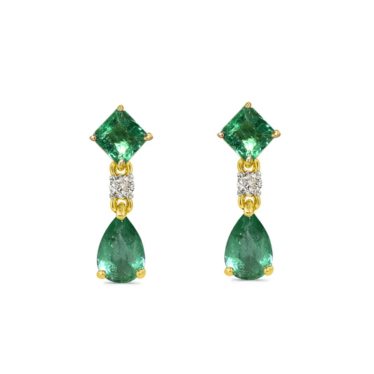 14k Emerald Diamond Square & Pear Drop Earring