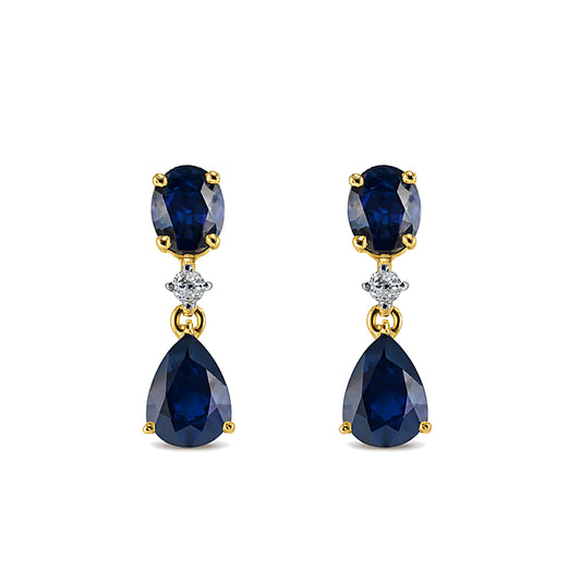14k Sapphire Diamond Oval & Pear Drop Earring