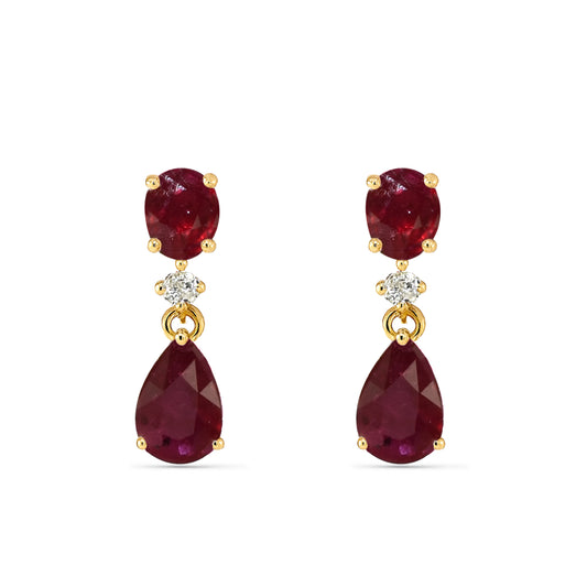 14k Ruby Diamond Oval & Pear Drop Earring