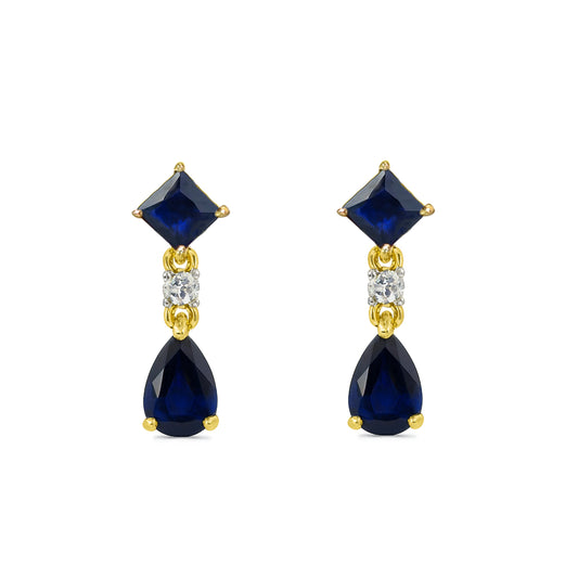 14k Sapphire Diamond Square & Pear Drop Earring