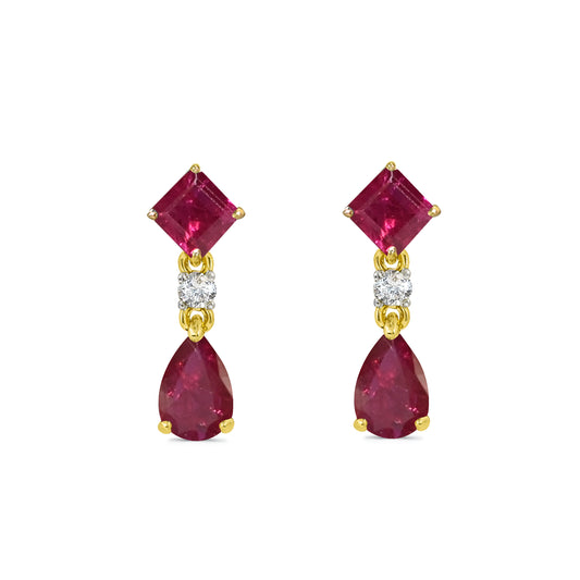 14k Ruby Diamond Square & Pear Drop Earring