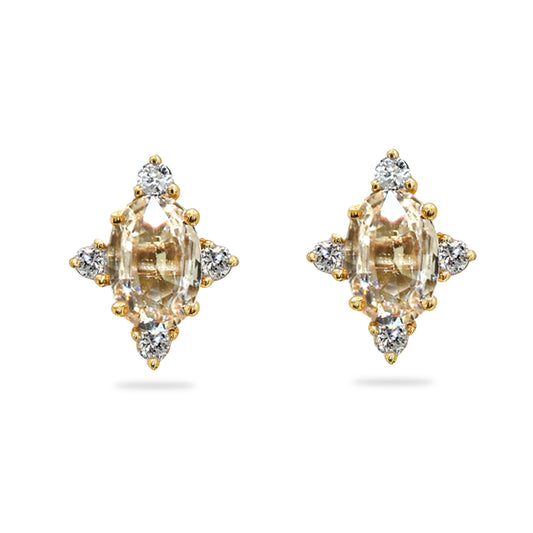 14k Yellow Sapphire Diamond Oval Star Earring