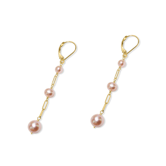 14k Natural Pink Pearl 3 Row Gold Chain Front Back EarringRegular price $ 1,120.00 USDRegular priceUnit price / per-