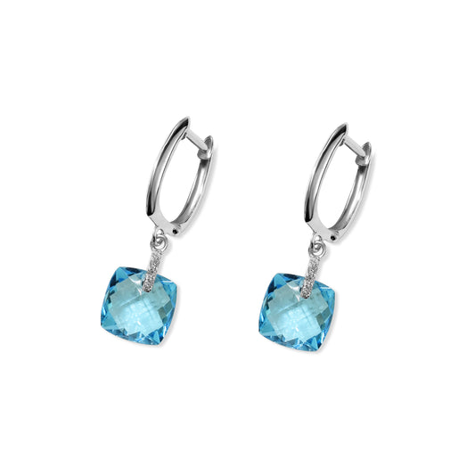 14k White Gold Swiss Blue Topaz Diamond VS Huggie Hoop Earring