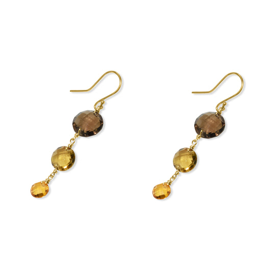14k Smoky Whisky Quartz Citrine Coin Hook Earring