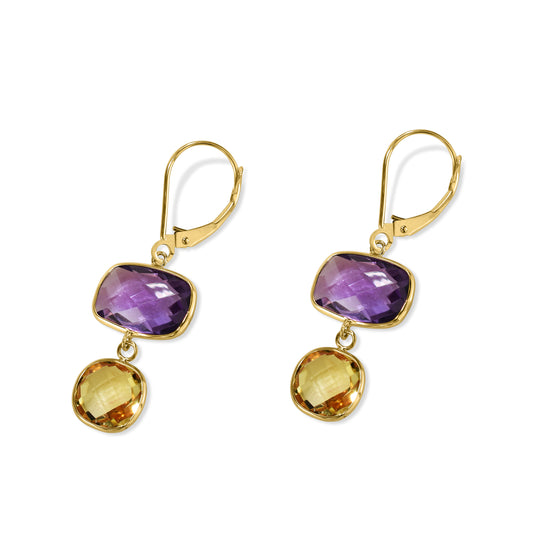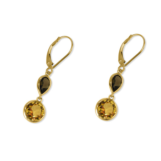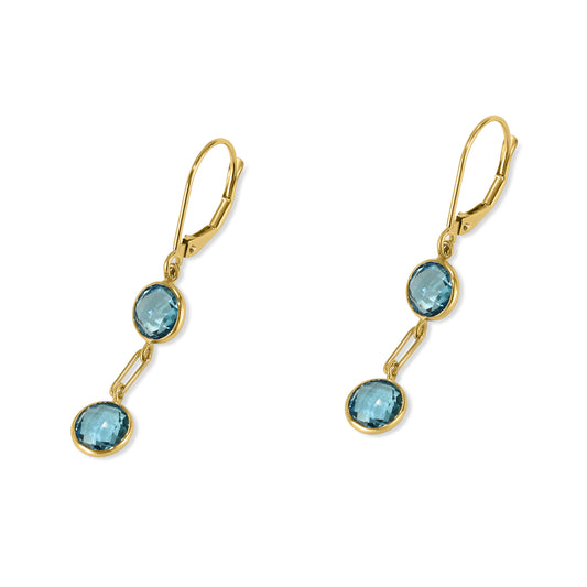 14k Swiss Blue Topaz Round and Oval Dangle Leverback Earring