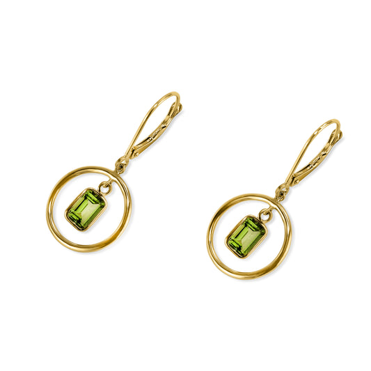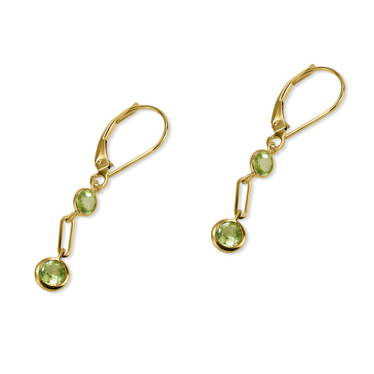14k Peridot Round Bezel Paperclip Dangle Leverback Earring