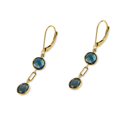 14k London Blue Topaz Paperclip Dangle Leverback Earring