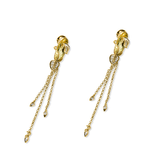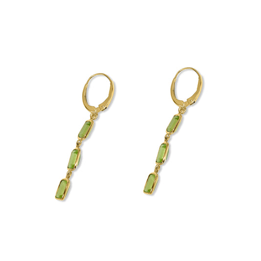 14k Peridot Triple Bezel Emerald Cut Dangle Leverback Earring
