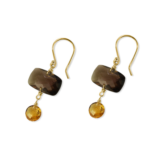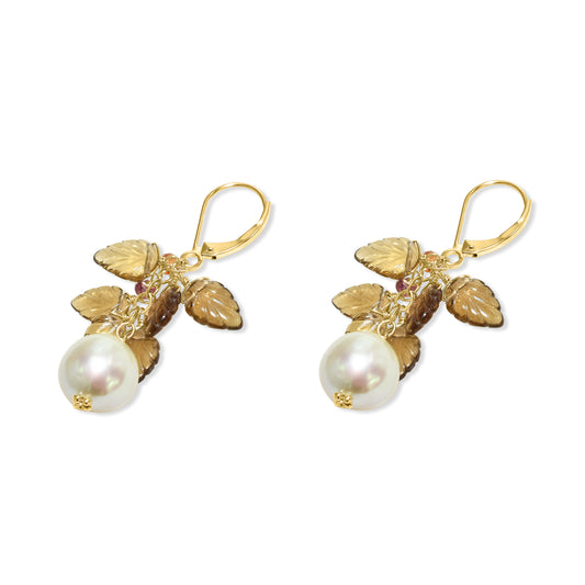 14k South Sea Pearl Gold Smoky Quartz Earring