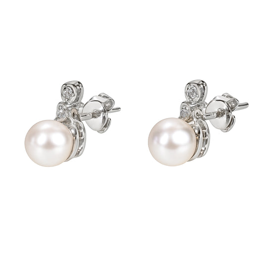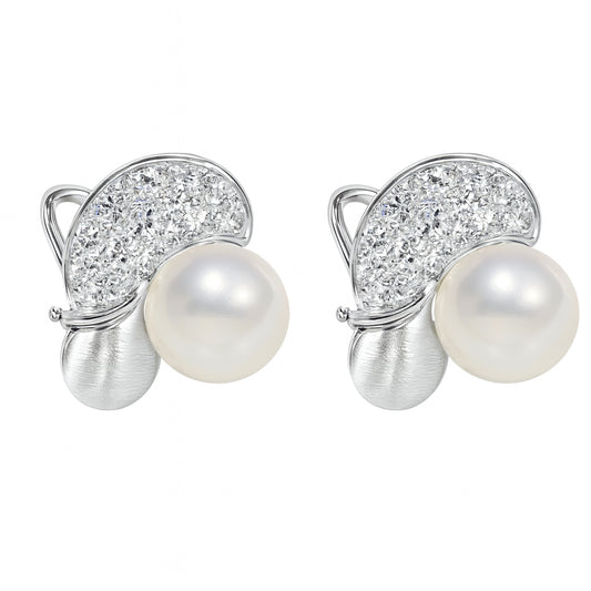14k White Gold Fresh Water Pearl Diamond Ear Clips
