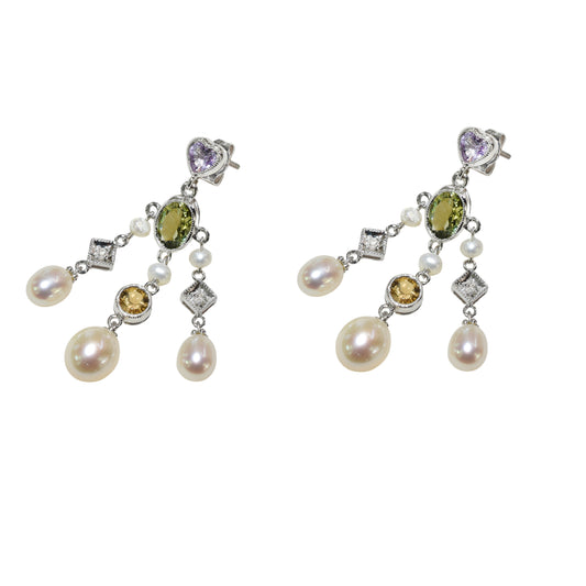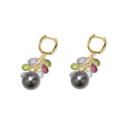 14k Tahitian South Sea Pearl Amethyst Peridot Citrine Tourmaline Blue Topaz Earring