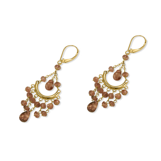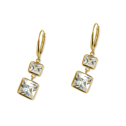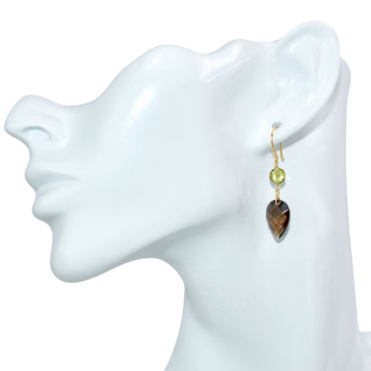 14k Peridot Triple Bezel Emerald Cut Dangle Leverback Earring
