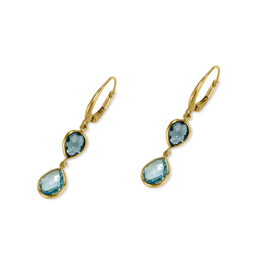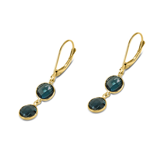 14k London Blue Topaz Double Round Bezel Leverback Earring
