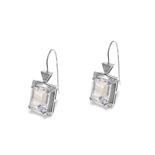 14k White Gold Kunzite Diamond Emerald Cut Deco Earrings
