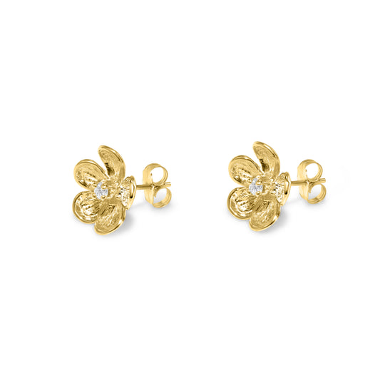 14k Diamond Dogwood Flower Post Stud Earring 0.10ct 11mm