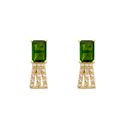 14k Yellow Chrome Diopside White Topaz Post Earring