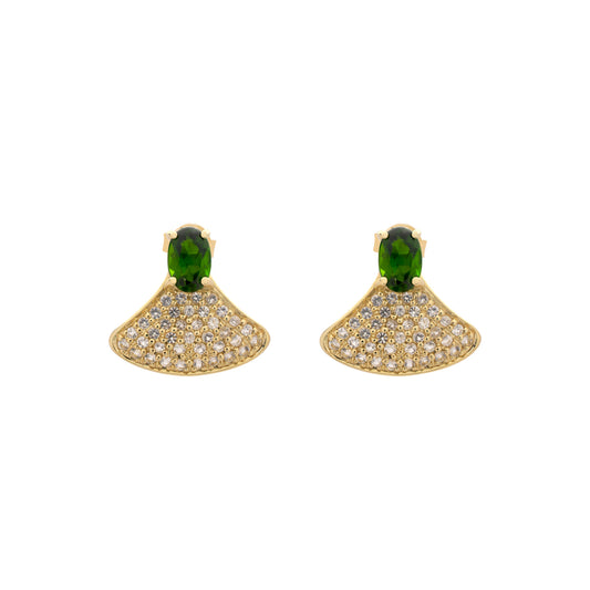 14k Yellow Chrome Diopside White Topaz Fan Shape Earring
