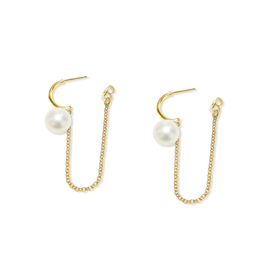 14k White Freshwater Pearl Triple Drop Leverback Earring