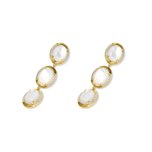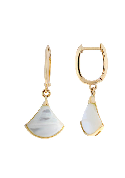 14k Mother of Pearl Fancy Bezel 3 Dangle Post Earring