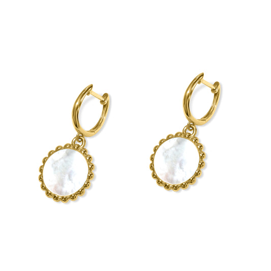 14k Mother of Pearl Fancy Bezel Roundish Hoop Earring