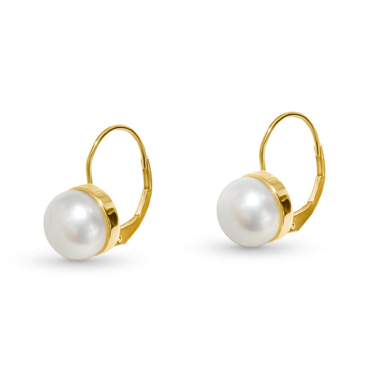 14k White Freshwater Pearl Leverback Earring 8MM