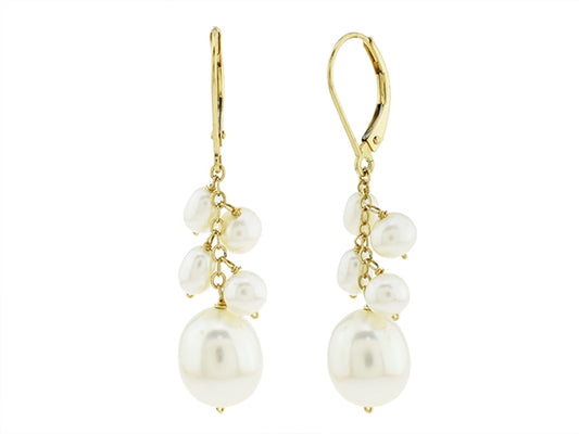 14k White Baroque Freshwater Pearl Leverback Earring