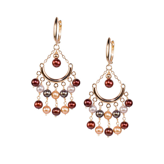 14k White, Grey, Champagne & Red Freshwater Pearl Chandelier Huggie Hoop Dangle Earring