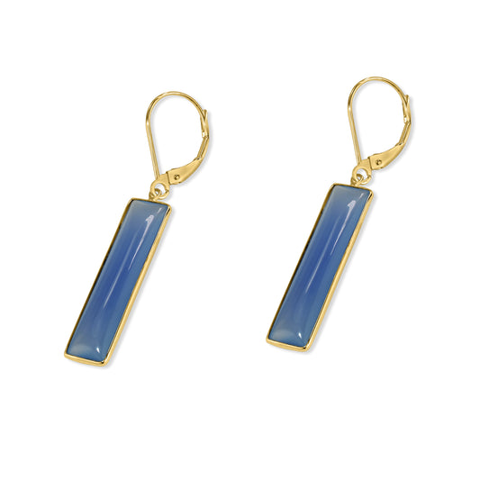14k Blue Onyx Rectangle Bezel Leverback Earring