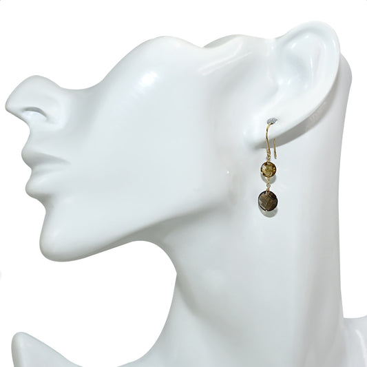 14k Peridot And Smoky Quartz Coin Hook Earring
