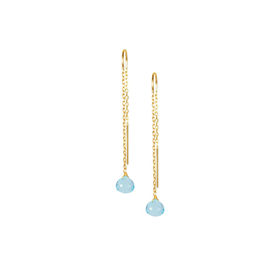 14k Faceted Heart Topaz Dangle Threader Earring