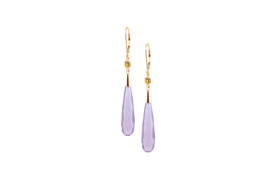 14k Amethyst Tear Drop Hoop Earring
