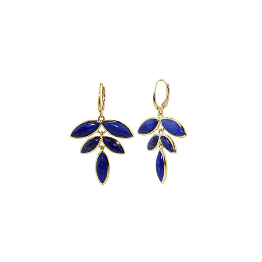 14k Dyed Lapis 5-Marquise Bezel Round Leverback Earring