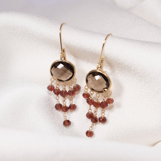 14k Smoky Quartz and Garnet Leverback Dangle Earring