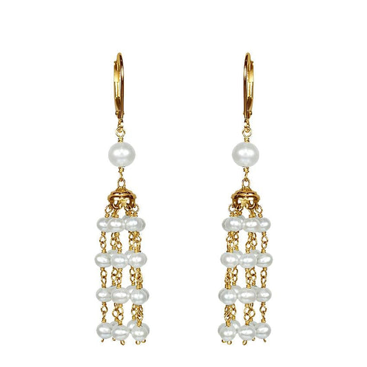 14k White Freshwater Pearls Chandelier Leverback Earring